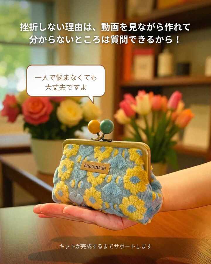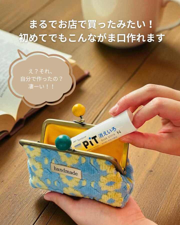 初めてでも、お店で購入したような仕上がりのがま口が作れます。
